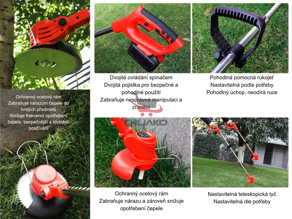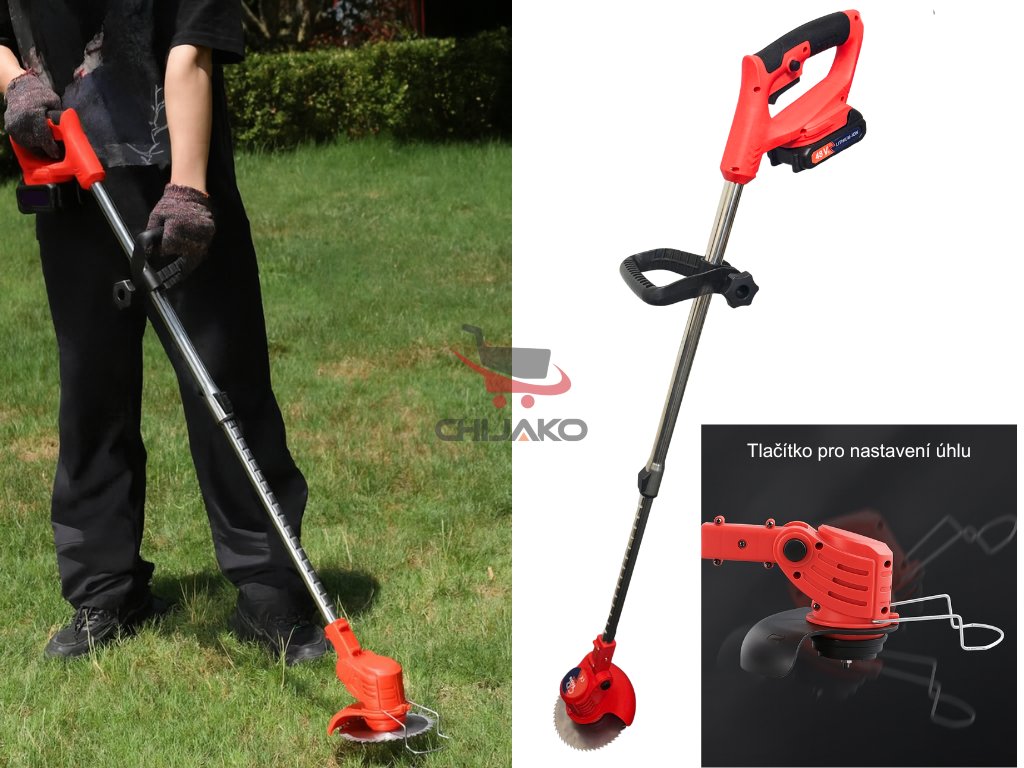 CD tools CD-303 AKU křovinořez,sekačka 2 baterie 21V s nastavitelnou hlavou – sada kotoučů a nožů