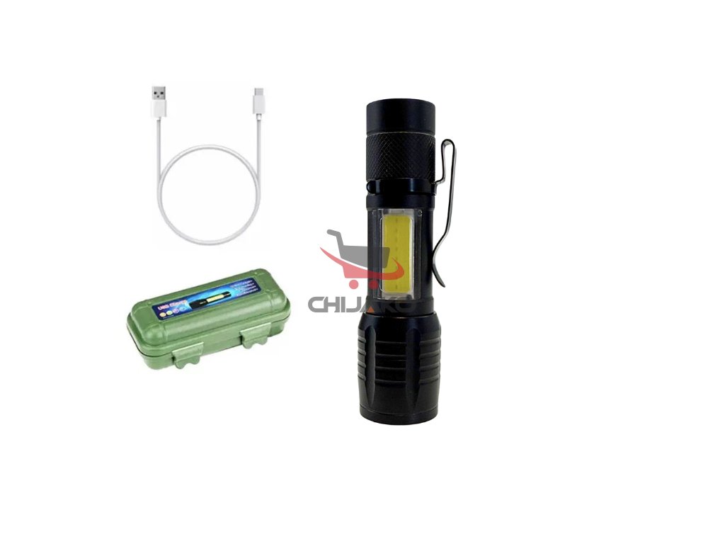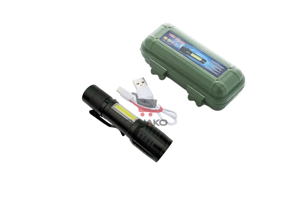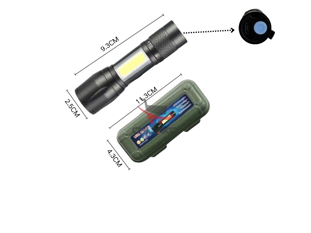 Výkonná kovová LED svítilna 2v1 s bočním světlem COB, USB dobíjecí